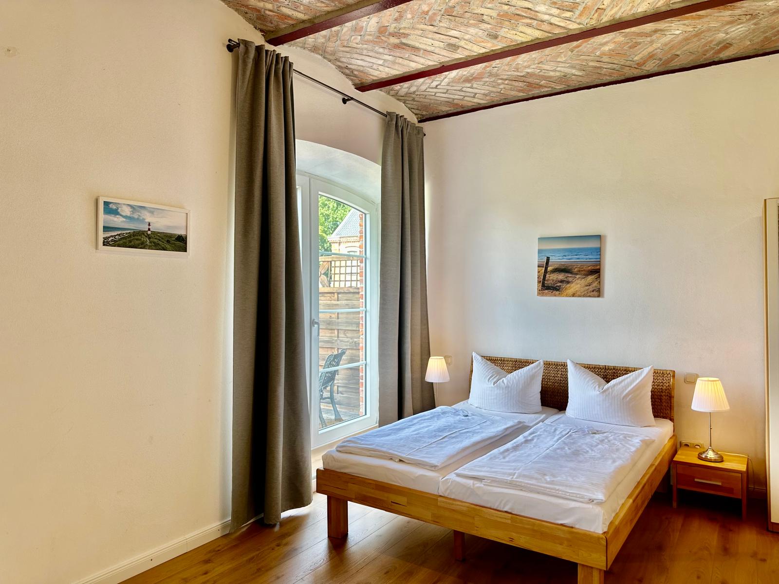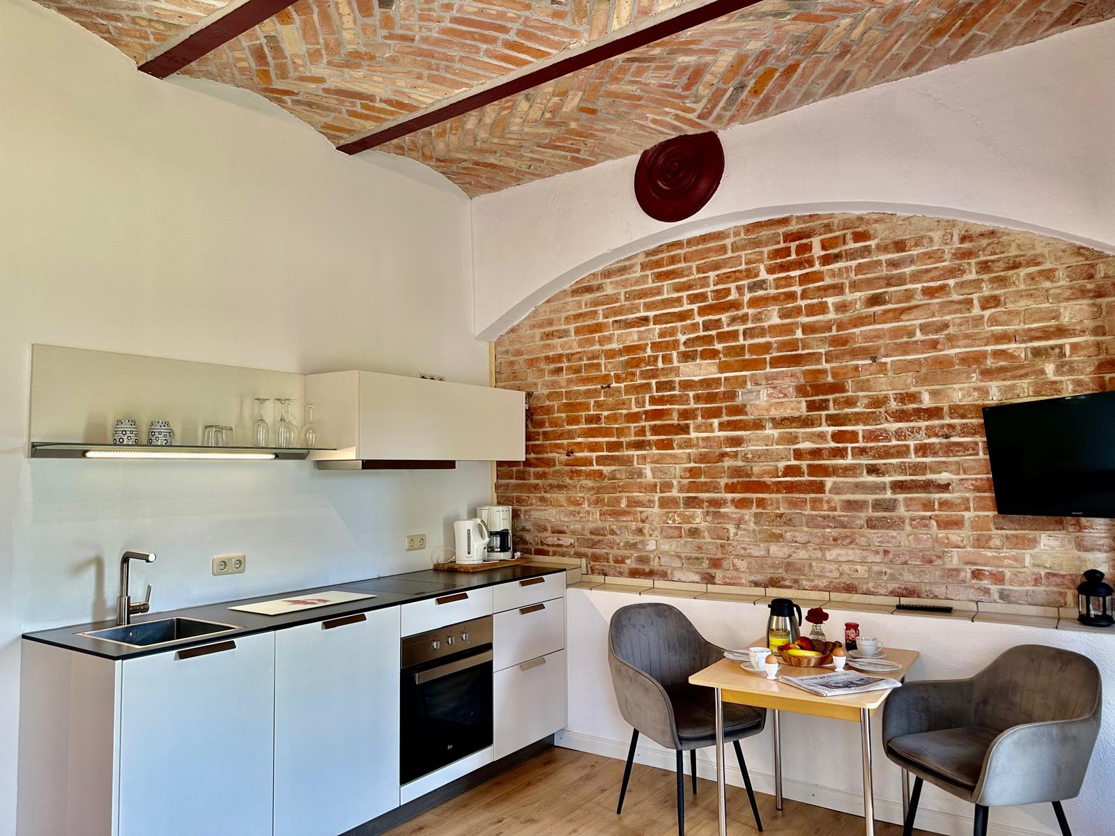 Die freigelegte Deckenstruktur dieses liebevoll und aufwändig restaurierten Gebäudes zeichnet diese Ferienwohnung besonders aus.